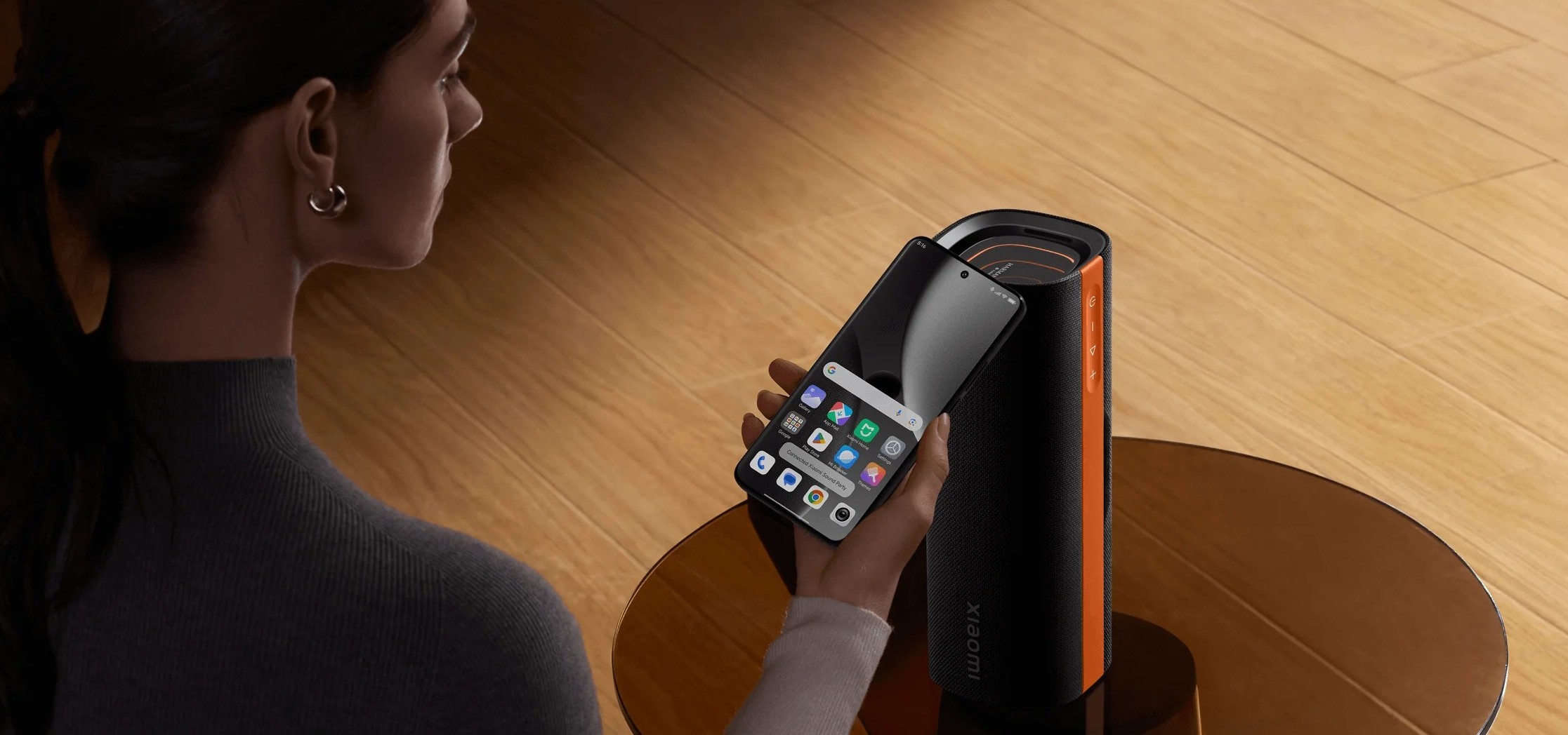 Xiaomi Sound Party NS7 выполнена в стильном корпусе с чёрной отделкой и оранжевыми акцентами. Колонка получила пластиковый корпус с влагозащитой по стандарту IP67, что делает её устойчивой к дождю и пыли. Она компактна и удобна для переноски, а эффектная многоцветная подсветка синхронизируется с ритмом музыки и создаёт атмосферу вечеринки.