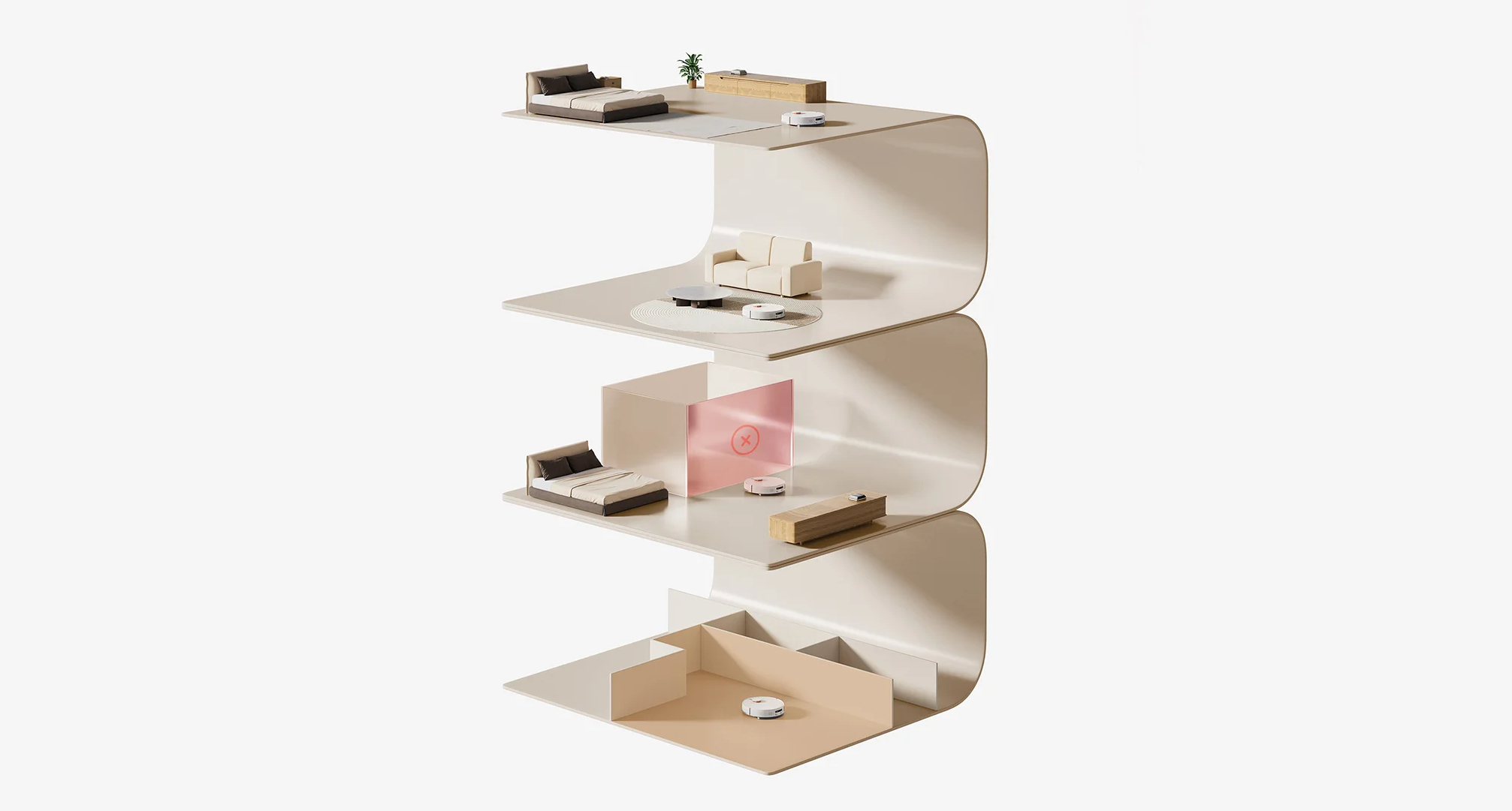 Лазерный сканер быстро создаёт карту помещения с точным зонированием. В приложении Xiaomi Home доступна 3D-визуализация, сохранение карт нескольких этажей и настройка виртуальных стен, зон уборки или запрета.